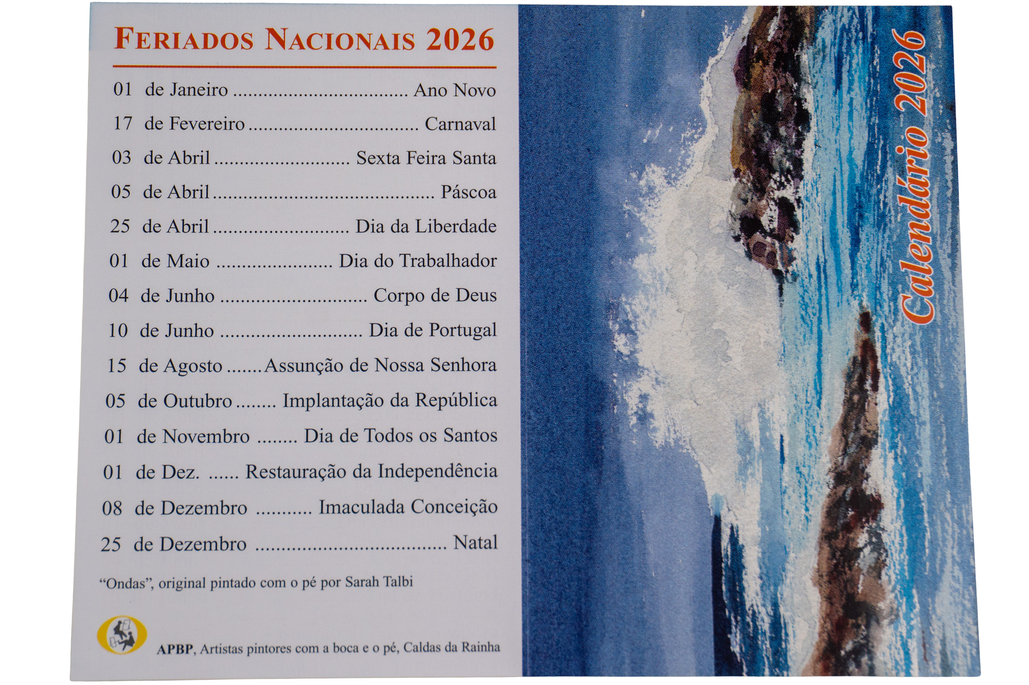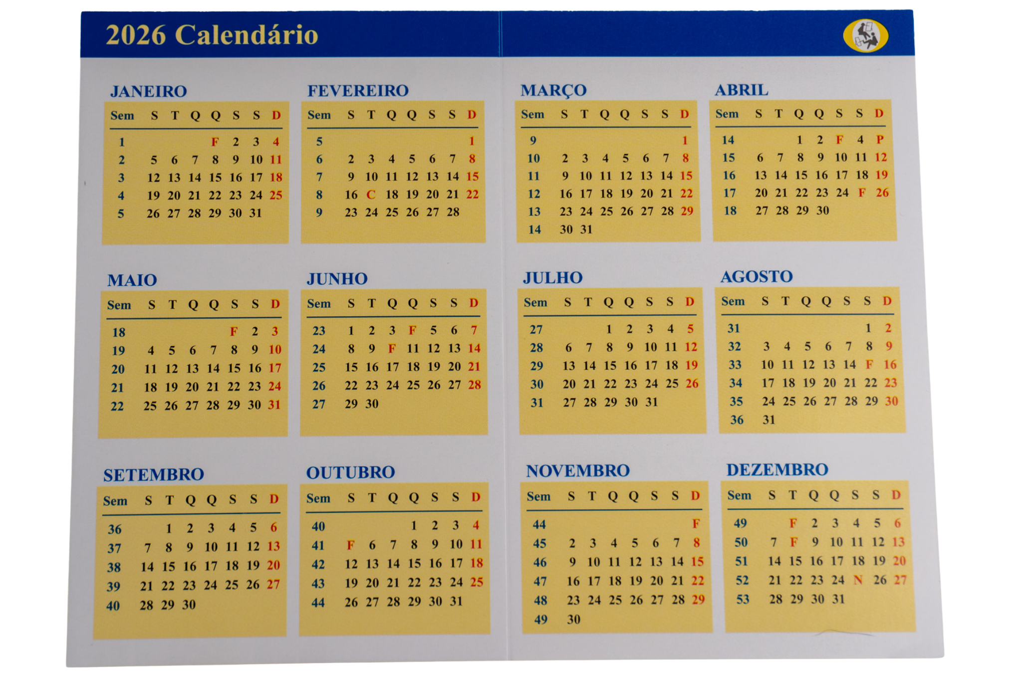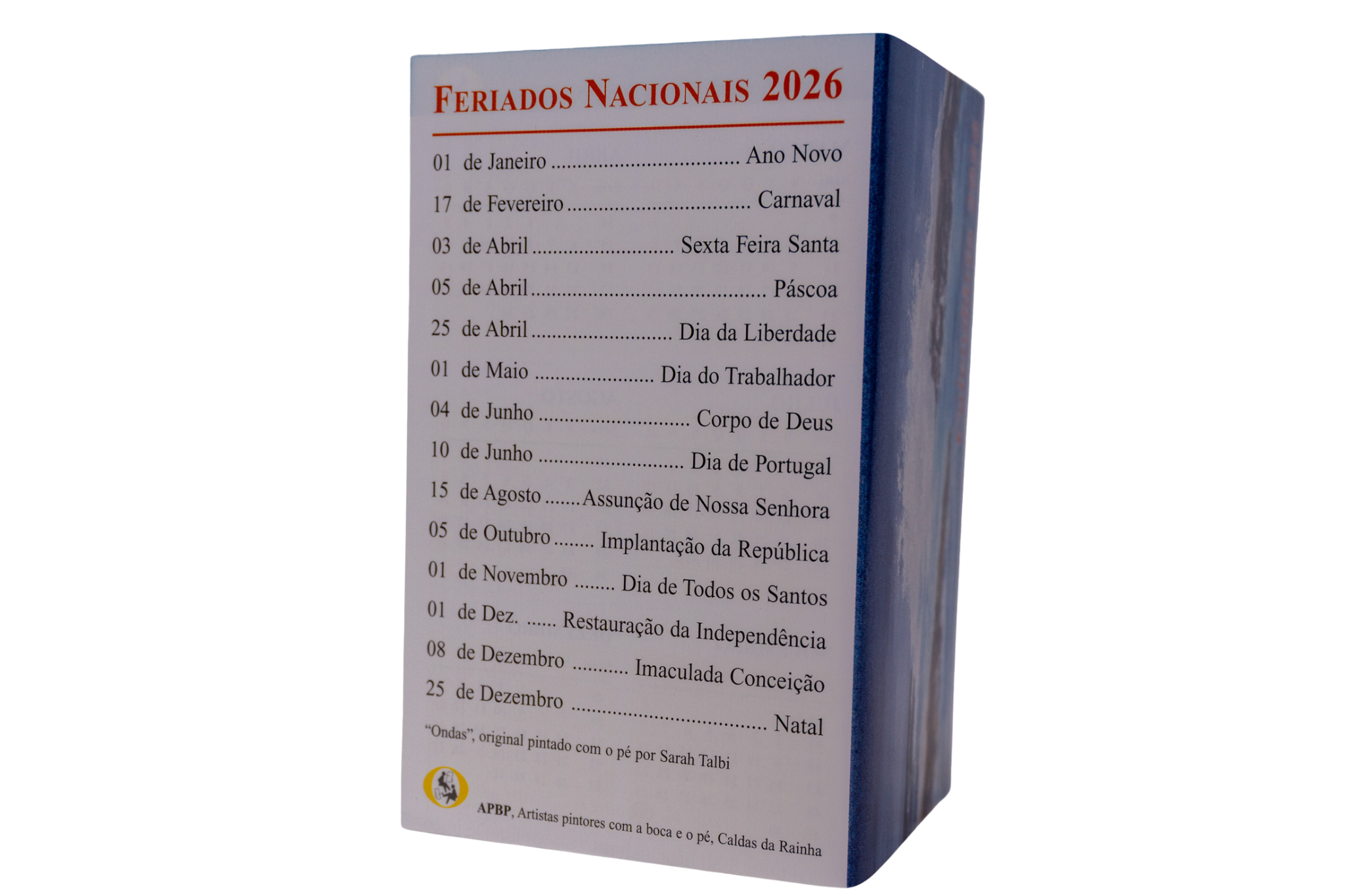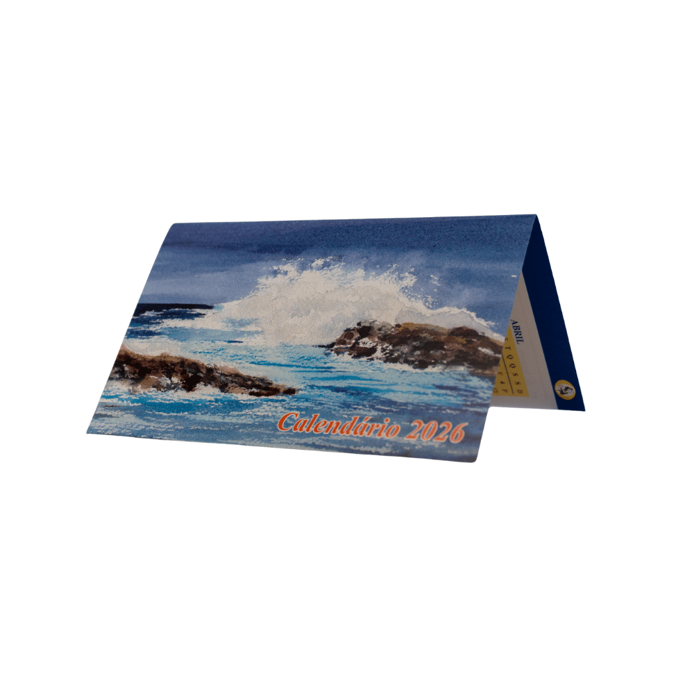 Um calendário em papel de grande qualidade e com impressão a quatro cores.